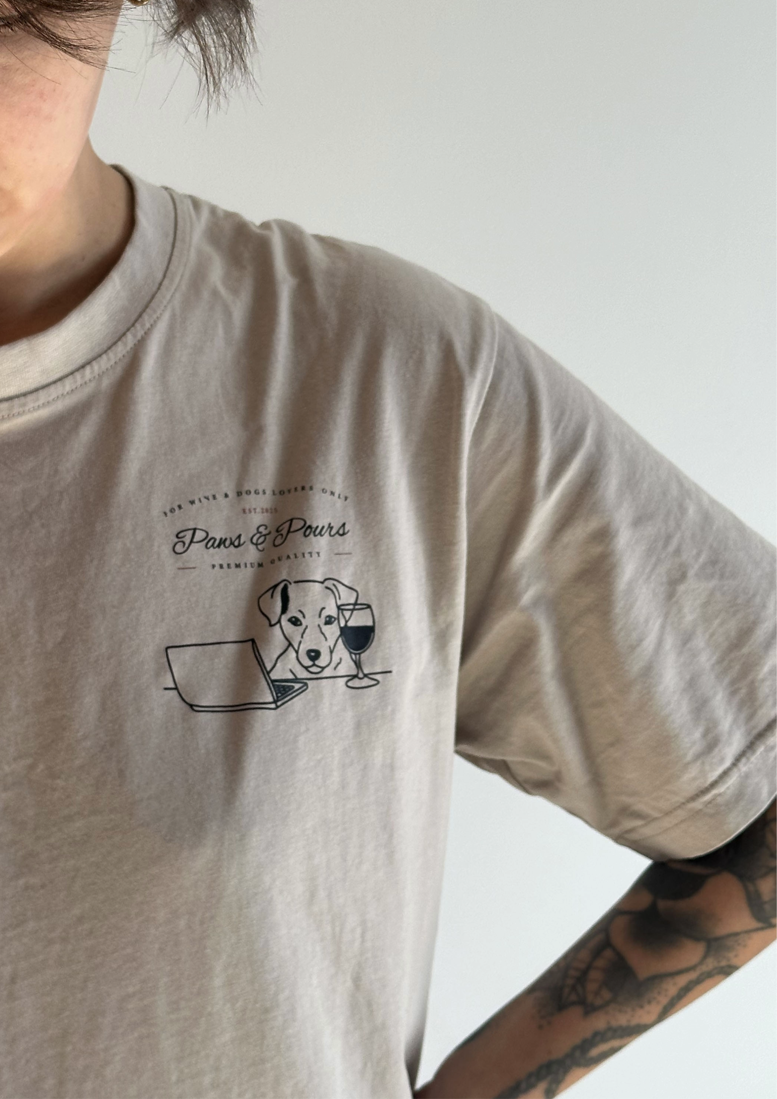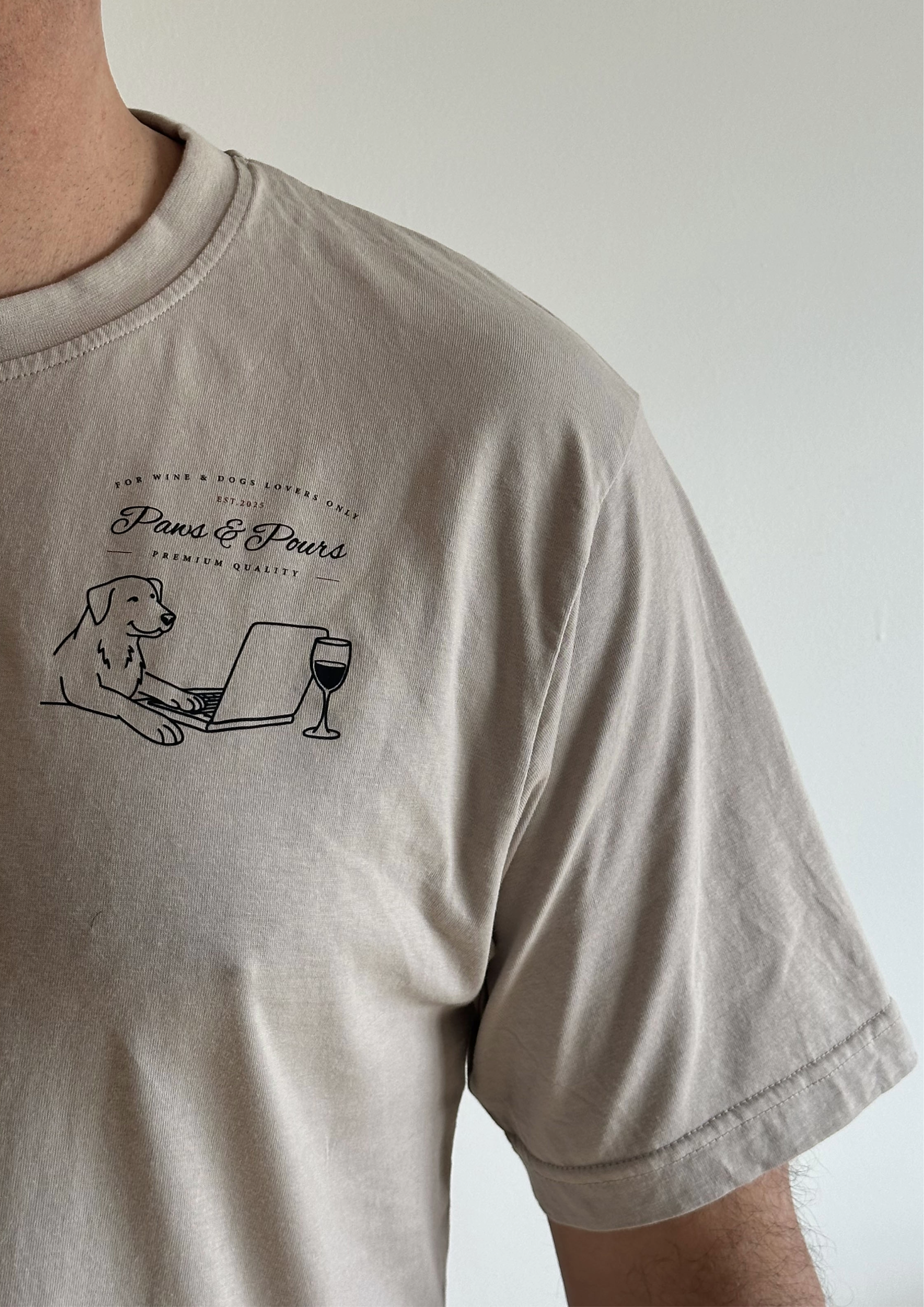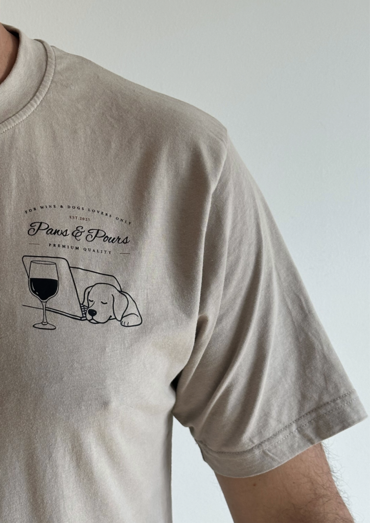 Explora tres diseños únicos unisex disponibles en tres tallas que combinan estilo y comodidad, ideales para amantes de perros y vino.